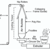 The bubble is cooled using an air ring system to stabilize the film structure. After cooling, the bubble is collapsed into flat film using guiding frames.